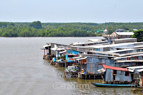 | Những cụm dân cư ven sông Kinh Tắc, ven sông Cửa Lớn của thị trấn Năm Căn nguy hiểm luôn chực chờ nhưng rất ít người dân chịu dời đi. |