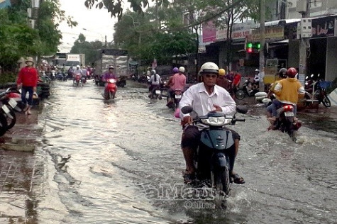 Một trong những tuyến đường ảnh hưởng nặng nhất là tuyến Nguyễn Đình Chiểu, Phường 8 và Hoa Lư, Phường 9. Nước ngập cả một đoạn khá dài, làm cho nhiều xe chết máy.