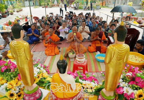 (CMO) Tết Chôl Chnăm Thmây của người Khmer diễn ra trong 3 ngày (14-16/4 dương lịch) với rất nhiều nghi thức và nghi lễ độc đáo như lễ thỉnh lịch Maha Sangkrang (Đại lịch), lễ Đắp núi cát… Đặc biệt trong ngày cuối cùng hôm nay (16/4) đã diễn ra lễ tắm Phật, tắm nhà sư trụ trì và lễ cầu siêu những người đã khuất. Đây là nghi lễ cuối cùng kết thúc Tết Chôl Chnăm Thmây.