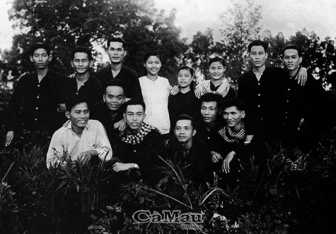 | Ông Nguyễn Hải Tùng (người đứng thứ ba, từ trái sang), Uỷ viên Ban Tuyên văn giáo tỉnh, chụp ảnh lưu niệm với cán bộ và biên tập viên báo Cà Mau tại ngọn rạch Bù Mắt, Năm Căn (30/6/1961). Ảnh tư liệu: VÕ AN KHÁNH |