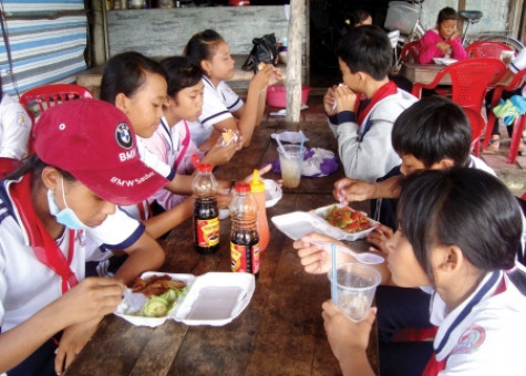 Hầu hết học sinh của trường đều là con em đồng bào dân tộc, cuộc sống còn gặp nhiều khó khăn, vì vậy, bữa ăn trưa của các em có khi chỉ qua loa để có sức học tiếp các tiết học buổi chiều. Thay vì hối hả về nhà nghỉ ngơi để chuẩn bị cho giờ học chiều thì các em lại tập trung lại từng nhóm tìm quán để ăn uống.