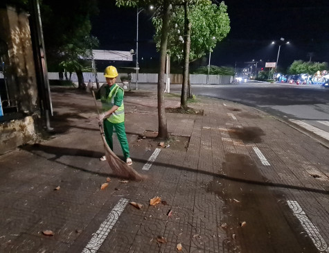 Công nhân cần mẫn quét rác giữa đêm khuya. Ảnh: T.L