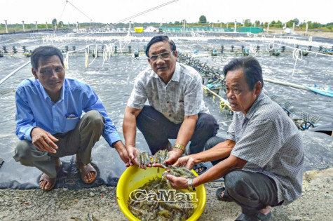 Quá giang chiếc vỏ máy sang sông, trèo lên cây cầu thang làm bằng thân cây đước rất đặc trưng của miền sông nước Cà Mau dẫn lên sân nhà ông Gấm, thấy ông đang loay hoay kéo ống bơm nước tưới cây, sẵn tay quơ mớ vỏ tôm xi phông bón cho mấy luống rau quanh nhà, rau xanh ươm, tốt mịt. Ông Gấm bảo, lượng vỏ tôm lột từ ao tôm công nghiệp rất nhiều, ông tận dụng trồng rau, hoa màu rất tốt, lại an toàn cho sức khoẻ. Có khi bà con không có điều kiện đến lấy, ông chở hẳn đến nhà cho bà con làm phân trồng rau. Sẵn đang trong bộ đồ làm nông, ông Gấm dẫn chúng tôi ra đầm tôm siêu thâm canh của gia đình, đầm tôm gồm 3 ao nuôi, 2 ao lắng được quy hoạch, cải tạo bài bản, đẹp mắt, đâu ra đó, hệ thống điện, nước hợp lý, an toàn, điều quan trọng nhất là duy trì hiệu quả nhiều năm qua.
