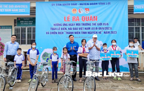 Huyện đoàn Vĩnh Lợi vận động tặng xe đạp, học bổng cho học sinh nghèo. Ảnh: H.L