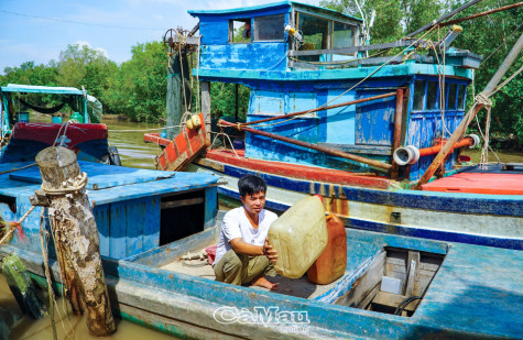 (CMO) Anh Phạm Trường Giang, Khóm 4, thị trấn Cái Đôi Vàm, huyện Phú Tân, lục lọi lại mớ can dầu rỗng không dưới ghe, sau cái thở dài, anh nói: “Ghe nằm bến cả tháng trời rồi, chắc phải đi Bình Dương làm công nhân thôi, đâu có cách nào khác”.