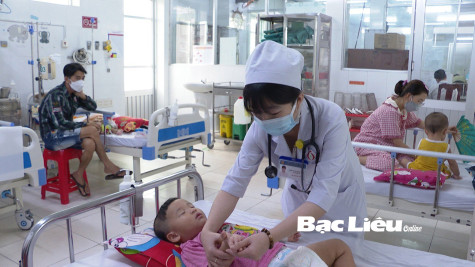 Chăm sóc bệnh nhi tại Bệnh viện Đa khoa Bạc Liêu. Ảnh: K.K