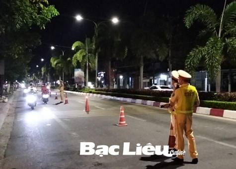 Cảnh sát giao thông lập chốt kiểm tra nồng độ cồn. Ảnh: K.K