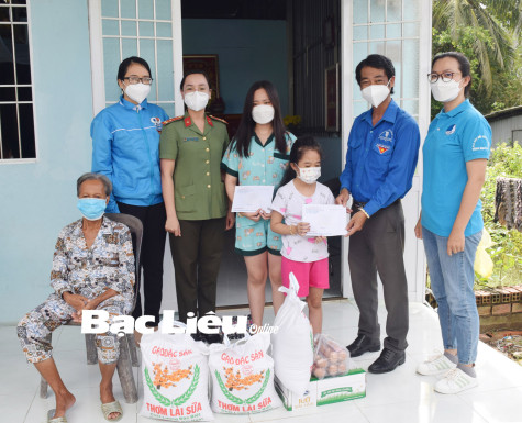 Cuối tuần, chúng tôi theo chân Tỉnh đoàn, Đoàn Thanh niên Công an tỉnh và CLB Kết nối yêu thương (trực thuộc Hội LHTN Việt Nam tỉnh) đến thăm hai em Nguyễn Lê Tuyết Nhi (SN 2005) và Nguyễn Lê Tuyết Như (SN 2014), ngụ xã Long Thạnh (huyện Vĩnh Lợi) mà lòng không khỏi xót xa. Ngồi bên di ảnh người mẹ đặt trên chiếc bàn nhỏ ở góc nhà còn khói nhang phảng phất, em Tuyết Nhi cho biết: “Trước đây, em cùng với em gái Tuyết Như học tập và sống với cha mẹ ở TP. Hồ Chí Minh. Cha mẹ em làm thuê để lo cho cuộc sống gia đình. Rồi mẹ em mất do bệnh COVID-19, tháng 10 vừa qua, em cùng em gái về sống với người dì và bà ngoại đã lớn tuổi bị bệnh tai biến. Cha thì tiếp tục ở lại TP. Hồ Chí Minh đi làm”.