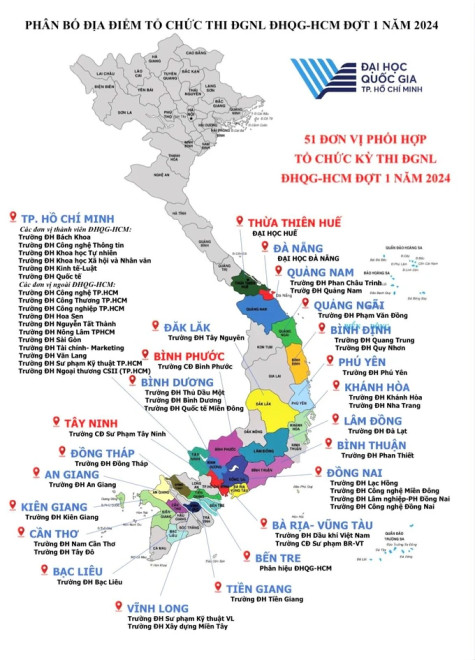 Bản đồ phân bố địa điểm thi đánh giá năng lực đợt 1 tại các tỉnh, thành phố. Ảnh: Internet