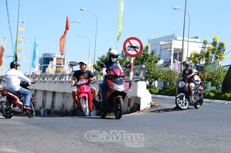 Tại khu vực chân cầu Cà Mau, thuộc địa bàn Phường 5 và Phường 7, TP Cà Mau, bất kể thời điểm nào, cứ hễ không có sự có mặt lực lượng chức năng thì người tham gia giao thông, chủ yếu là phương tiện xe mô tô đi từ phía chợ Phường 7 vô tư rẽ trái tắt lên cầu Cà Mau, bất chấp bảng cấm rẽ trái. Điều này thực sự rất nguy hiểm, bởi từ hướng ngược lại có rất nhiều phương tiện lưu thông đổ dốc xuống phía chân cầu.
