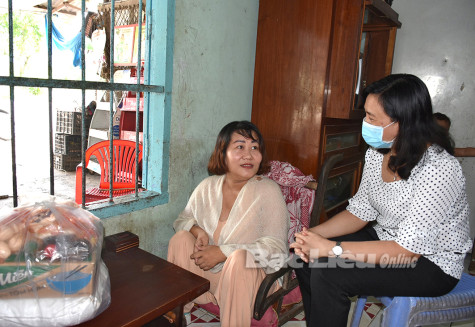 Phó Giám đốc Sở LĐ-TB&XH - Nguyễn Thùy Như đến thăm, động viên và tặng quà chị Thạch Thị Lan Phương. Ảnh: H.T
