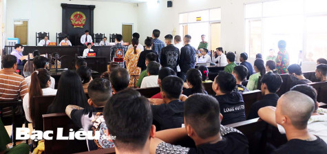 Phiên tòa xét xử các bị cáo chém người vì nhìn đểu tại Tòa án nhân dân tỉnh Bạc Liêu. Ảnh: K.K