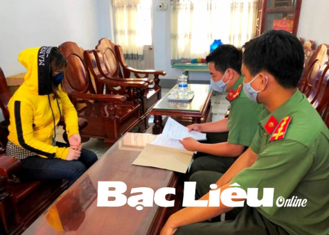 Công an huyện Hòa Bình xử lý đối tượng đăng tin sai sự thật trên mạng xã hội. Ảnh: Thanh Phong
