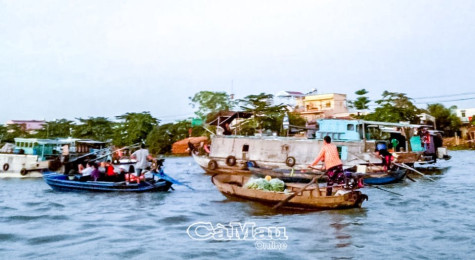 | Tiếng rao trở thành nét đặc trưng văn hoá sông nước Nam Bộ. (Ảnh chụp tại chợ nổi Cái Răng, trước giãn cách xã hội). |