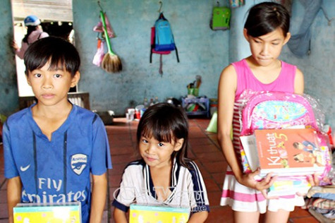 "Tụi con có thích đi học không?”, tôi hỏi. “Dạ thích, mà cha con không có tiền”, Thu giọng buồn. Năm học mới, Thu lên lớp 5, Điền lớp 4, còn bé Quyên tới tuổi vô lớp 1. Vậy mà nay tụi nhỏ chưa có 1 quyển tập mới. Mấy bộ quần áo đi học năm rồi đã cũ, thâm kim do mấy trận mưa lớn vừa qua nhà dột ẩm ướt. Bé Thu buồn so: “Lớn thêm chút con sẽ nghỉ học đi làm để lo cho em. Thằng Điền, con Quyên ham học lắm!”.