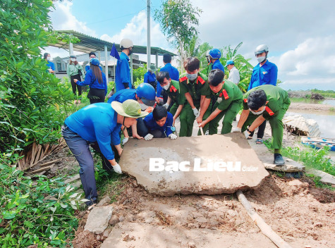 Đoàn viên - thanh niên sửa chữa lộ nông thôn xuống cấp. Ảnh: H.L