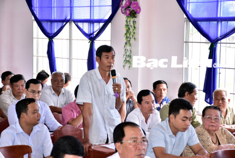 Cử tri xã Phong Thạnh A (TX. Giá Rai) kiến nghị với Đoàn đại biểu Quốc hội tỉnh tại buổi tiếp xúc cử tri. Ảnh: H.L