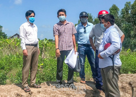 Chủ tịch UBND huyện Năm Căn Lê Văn Ngời (bìa trái) kiểm tra mô hình kinh tế của người dân.