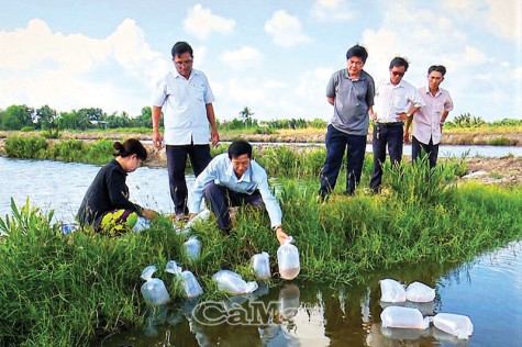 | Tất cả 138 hộ dân tham gia thực hiện dự án đã tiếp nhận và thả nuôi tôm giống càng xanh toàn đực. |