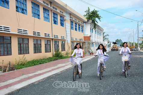 | Công trình tuyến đường phía sau trường cấp II, III, thuộc Khóm 4, thị trấn Đầm Dơi vừa hoàn thành đem đến niềm vui cho học sinh và người dân trong khu vực. Ảnh: Trần Chiến |