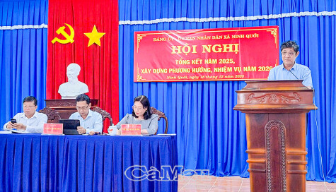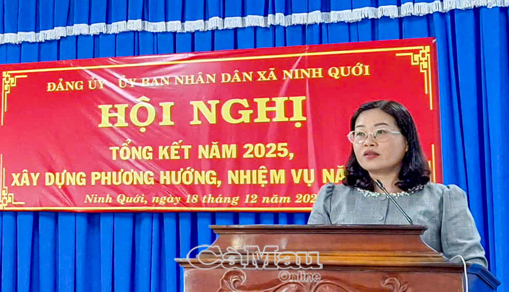 Báo Cà Mau Chiều 18/12, Ban Thường vụ Đảng uỷ xã Ninh Quới tổ chức Hội nghị Ban Chấp hành Đảng bộ xã lần thứ 3 (mở rộng) tổng kết năm 2025 và xây dựng phương hướng, nhiệm vụ năm 2026. Dự hội nghị có đồng chí Nguyễn Huy Thái, Phó Trưởng đoàn Chuyên trách Đoàn đại biểu Quốc hội tỉnh Cà Mau.