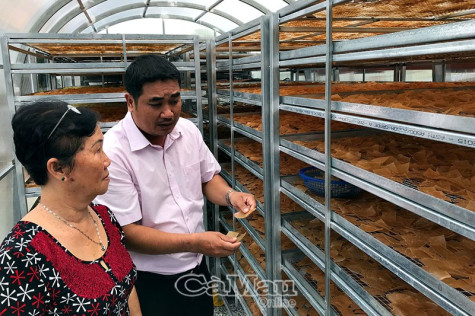 | Máy sấy bánh phồng tôm do Trung tâm Khuyến công Cà Mau hỗ trợ cơ sở Phúc Nhân (Ấp 2, xã Hàng Vịnh) đưa vào hoạt động hiệu quả. |