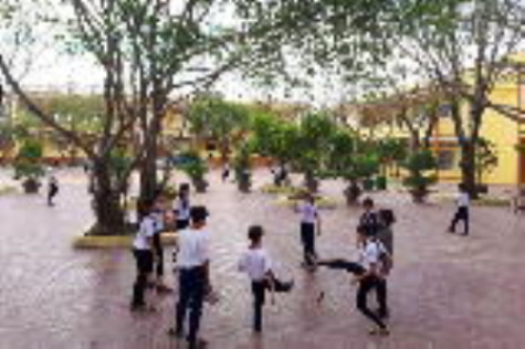 Khuôn viên trường thoáng mát, các em học sinh thoả sức vui chơi. |