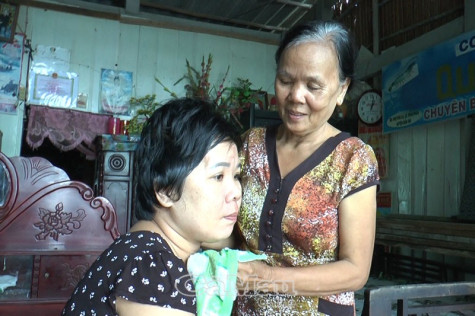 | Chị Trần Mỹ Ngân, con gái ông Trần Văn Thắng đang được mẹ chăm sóc sau tai nạn. |