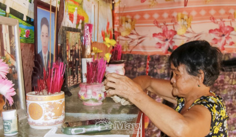 Ðơn cử như trường hợp của bà Lê Thị Mâu, 71 tuổi, ngụ khóm Rạch Gốc B, thị trấn Rạch Gốc, huyện Ngọc Hiển. Bà Mâu đâu có ngờ rằng tới cái tuổi “gần đất, xa trời” này rồi mà phải một mình quạnh hiu trong căn nhà trống trước, dột sau. Nói là nhà nhưng thực ra giống như một mái chòi tạm, chỉ vỏn vẹn vài mét vuông được dựng trên phần đất người con rể cho mượn. Trong nhà chẳng có thứ gì quý giá ngoài bàn thờ với 2 di ảnh của con trai và con dâu mới vừa mất cách nay hơn 1 năm. Ðứa con trai mà bà Mâu mong mỏi sẽ nương tựa lúc tuổi già bóng xế, thế nhưng trong một lần bất cẩn khi lưu thông trên đường, anh Mai Văn Cần đã ra đi mãi mãi, để lại mẹ già đơn côi trong căn nhà trống hốc. Với đôi mắt lờ mờ do bệnh cườm, cùng sức khoẻ yếu, giờ đây cuộc sống bà Mâu chỉ nhờ vào vợ chồng người con gái, cũng rất khó khăn, phải chạy ăn từng bữa.
