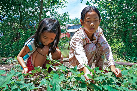 Mộng Nghi (bên phải) mong muốn được học đến lớp 9 để có thể phụ giúp lo cho gia đình. |