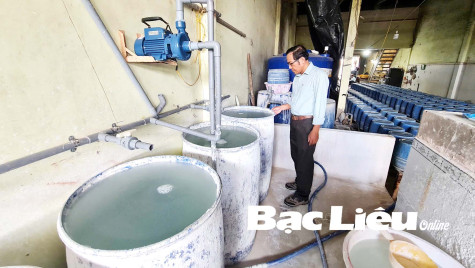 Đoàn kiểm tra liên ngành về vệ sinh an toàn thực phẩm tỉnh kiểm tra một cơ sở làm giá ở địa bàn Phường 1 (TP. Bạc Liêu). Ảnh: T.Q