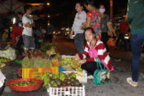 | Chợ đêm trước cửa các xí nghiệp thuỷ sản phục vụ công nhân tan ca. |