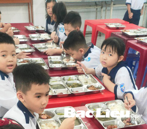 Trong năm học 2022 - 2023, mỗi ngày Trường tiểu học Lê Văn Tám (Phường 1, TP. Bạc Liêu) tổ chức nấu trên 1.600 suất ăn, trong đó nấu cho học sinh tại trường là 806 suất, 800 suất còn lại cung cấp cho Trường tiểu học Phùng Ngọc Liêm, Lê Hồng Phong và tiểu học Trần Phú. Bà Lại Thị Phương Loan - Hiệu trưởng Trường tiểu học Lê Văn Tám, cho biết: “Việc tổ chức bữa ăn bán trú cho học sinh với số lượng lớn luôn là nỗi lo và đòi hỏi trách nhiệm cao cho tập thể nhà trường. Do đó, trường luôn xác định, việc tổ chức bếp ăn bán trú phải đáp ứng đầy đủ các yếu tố như: Nguồn thực phẩm sạch, bữa ăn bảo đảm an toàn, chế độ dinh dưỡng phù hợp với sự phát triển của học sinh. Trường chủ yếu chọn thực đơn gồm thịt heo và cá, hạn chế tối đa thực phẩm đông lạnh, lên men. Thực đơn bữa ăn được lập theo tuần, nguồn nguyên liệu được ký hợp đồng với các đơn vị cung cấp thực phẩm có giấy kiểm định chất lượng VSATTP như ISO, VietGAP. Khu vực chế biến thực phẩm được thiết kế theo nguyên tắc một chiều từ nguyên liệu đầu vào cho đến sản phẩm cuối cùng để tránh ô nhiễm. Quy trình từ khâu lựa chọn nguyên liệu, sơ chế, chế biến, bảo quản, lưu mẫu đều tuân thủ nghiêm ngặt theo quy định VSATTP. Về cơ sở vật chất, trang thiết bị nhà bếp được trường đầu tư mua sắm nhiều dụng cụ đạt tiêu chuẩn như: tủ lạnh, tủ lưu thực phẩm sống và chín riêng biệt, tủ cơm, nước sử dụng hợp vệ sinh”.