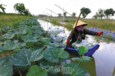 Nổi tiếng với việc đưa màu xuống ruộng, đây là thời điểm bà con nông dân xã Trần Hợi, huyện Trần Văn Thời dốc sức chăm sóc bí rợ để mong có vụ mùa bội thu sau tết. Nhà thì bón gốc bí, chỗ thì tưới nước, nhổ cỏ. Khung cảnh ngày ra đồng đầu năm rộn rã tiếng nói cười, thăm hỏi, chúc nhau một năm gặt hái nhiều thành công.