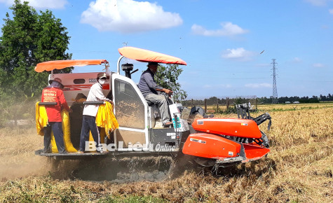 Nông dân huyện Vĩnh Lợi thu hoạch lúa đông xuân.