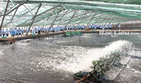 Mô hình nuôi tôm ứng dụng công nghệ cao siêu thâm canh trong nhà kín của Công ty Cổ phần Việt Úc - Bạc Liêu.