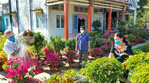 | Ông Phan Minh Khoẻ, Bí thư Ðảng uỷ xã Tạ An Khương Ðông (đứng giữa) tham quan mô hình trồng hoa, cây xanh tạo cảnh quan đẹp, góp phần xây dựng NTM của gia đình ông Trần Văn Biếu (tưới nước), là hội viên nông dân, bà Trịnh Thị Út (cắt cây), là hội viên phụ nữ; cả 2 vợ chồng đều tích cực hưởng ứng các phong trào của địa phương phát động, từ lao động sản xuất đến thực hiện mô hình hàng rào cây xanh, nhà sạch, ngõ đẹp, góp phần cho diện mạo nông thôn thêm khởi sắc. |
