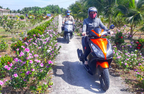 | Nhiều tuyến đường trên địa bàn xã được bà con trồng hoa, tạo nên cảnh quan xanh - sạch - đẹp. |