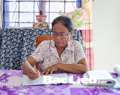 Cô Thạch Thị Sanh nghiên cứu các chính sách mới để tuyên truyền lại cho người dân ấp Sóc Đồn. Ảnh: T.Q