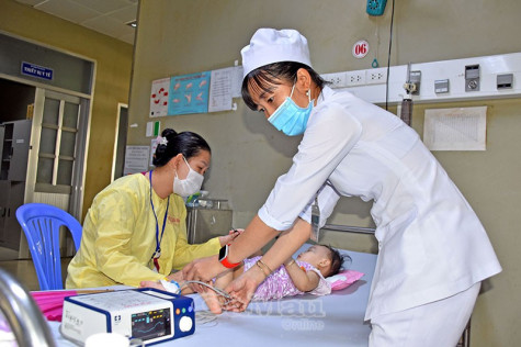 | Điều dưỡng Trương Hồng Thơ thực hành các thao tác chuyên môn nhanh chóng và chính xác. |