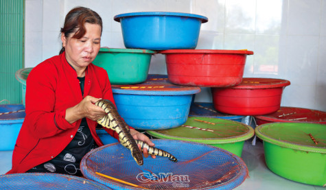 (CMO) Hơn 5 năm gắn bó với công việc nuôi rắn ri tượng giúp chị Lâm Thị Nâu (ấp Trần Độ, xã Thạnh Phú, huyện Cái Nước) có nguồn thu nhập bền vững, thu về lợi nhuận vài chục triệu đồng mỗi năm. Kinh tế gia đình ngày càng khấm khá.