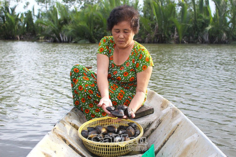 Bà Tây nói thêm: “Trước khi thả nuôi, tôi phải sên đổi mặt đất hết. Sau đó xử lý cho môi trường nước ổn định. Cũng như nuôi tôm, khi nước tốt, vào thời điểm thích hợp (khoảng tháng 4 âm lịch, bắt đầu mùa mưa) mới thả con giống nuôi. Khoảng 5 tháng sau là bắt đầu thu hoạch dần đến qua Tết. Nhờ là vùng nước không quá mặn, nên tỷ lệ hao hụt khoảng 10%”.