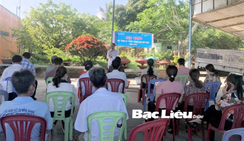 Hội LHPN huyện Phước Long phối hợp với Công ty Thủy sản Bạc Liêu tổ chức Hội thảo Quy trình trồng đậu bắp Nhật. Ảnh: T.T
