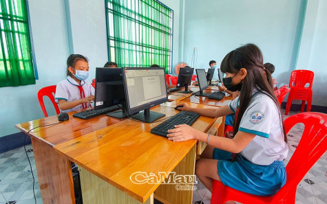 Giờ học tin học của học sinh Trường Tiểu học Hoà Mỹ I. Ảnh: HỒ KIM |