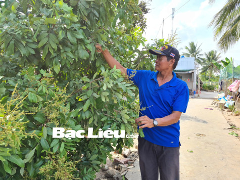 Ông Danh Phel chăm sóc cây thanh nhãn. Ảnh: T.L