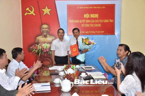 Sáng 12/11, UBND tỉnh tổ chức công bố Quyết định của Chủ tịch UBND tỉnh về việc bổ nhiệm ông Phạm Hoàng Minh tiếp tục giữ chức Giám đốc Ban Quản lý Khu nông nghiệp ứng dụng công nghệ cao phát triển tôm Bạc Liêu.
