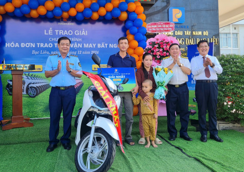 Sáng 30/12, Chi nhánh Xăng dầu (Petrolimex Bạc Liêu) tổ chức Lễ trao giải chương trình “Hóa đơn trao tay - vận may bất ngờ” của Tập đoàn Xăng dầu Việt Nam (Petrolimex) cho các khách hàng may mắn trên địa bàn tỉnh.