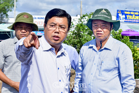 | Bí thư Tỉnh uỷ Nguyễn Tiến Hải cùng Chủ tịch UBND tỉnh Huỳnh Quốc Việt (bìa phải) kiểm tra tiến độ thi công tại vị trí đấu nối Quốc lộ 1 thuộc Dự án thành phần 2 đầu tư xây dựng trục lộ Đông - Tây đi qua địa bàn huyện Cái Nước. |