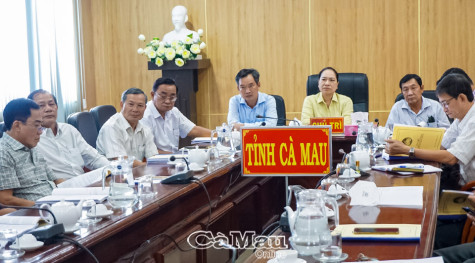 | Lãnh đạo Uỷ ban MTTQ Việt Nam tỉnh và các đại biểu dự hội nghị tại điểm cầu Cà Mau. |