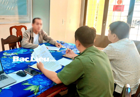 Phòng An ninh mạng và phòng chống tội phạm sử dụng công nghệ cao tỉnh Bạc Liêu làm việc với ông Trung.